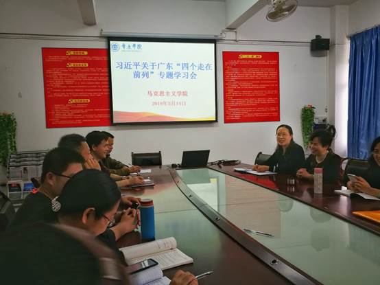3月14日,taptap点点官方网站党总支理论中心组学习扩大会议在院会议室举行,会议由曹顺霞书记主持。党员认真学习了习近平在3月7日参加十三届全国人大一次会议广东省代表团讨论时发表的重要讲话精神。党的十八大召开以来,习近平非常关注广东的发展,从2012年对广东提出“三个定位,两个率先”、2017年提出“四个坚持、三个支撑,两个走在前列”到这次对广东提出“四个走在全国前列”,反映了中央对我省的期望。党员老师表示一定要认真学习习总书记讲话精神,贯彻到自己的教学教研工作中,努力为把我省建设成为向世界展示践行习近平新时代中国特色社会主义思想、展示我国改革开放成就、国际社会观察我国改革开放的“重要窗口”和“示范区”做出应有贡献。