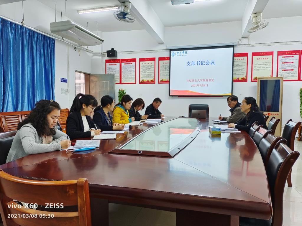 3月8日,马院党总支召开了支部书记工作会议。会议认真学习了习近平总书记看望参加全国政协十三届四次会议的医药卫生界、教育界委员的重要讲话精神,进一步明确了习近平总书记对思政课教师机寄予的厚望,思政课教师也深感肩上责任重大,大家表示要用习近平新时代中国特色社会主义思想铸魂育人。