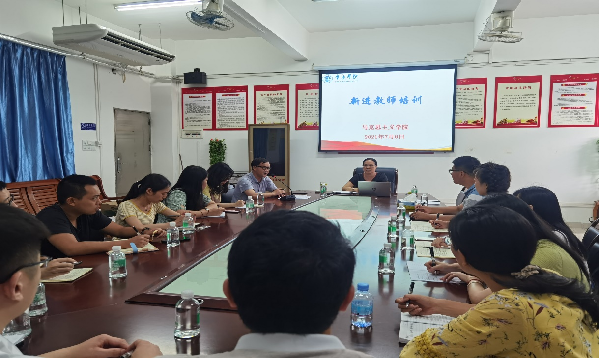 曹和修副院长从教学任务安排、教学过程、学生成绩评定、考试出题及试卷装订要求等方面的教学管理细则进行了详细的解读,要求新进教师利用暑期认真熟悉教材备好课,为新学期教学做好充分准备,并对“数字马院”教学平台的使用进行了说明。