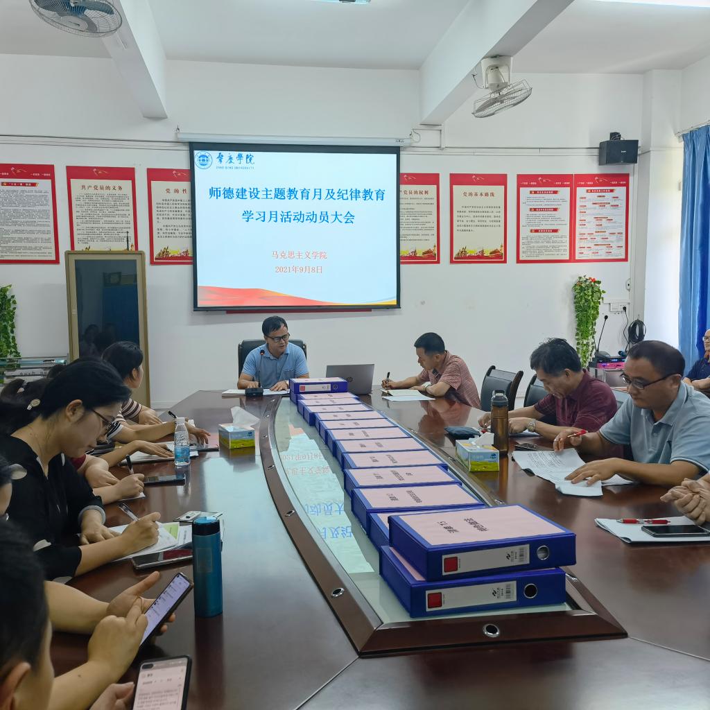 会上,曹和修副院长组织全院教师学习《肇庆学院2021年纪律教育学习月活动实施方案》和《肇庆学院 2021 年师德建设主题教育月活动方案》文件精神和要求,就此次专题教育的主题、目标、内容、步骤进行了详细的解读。