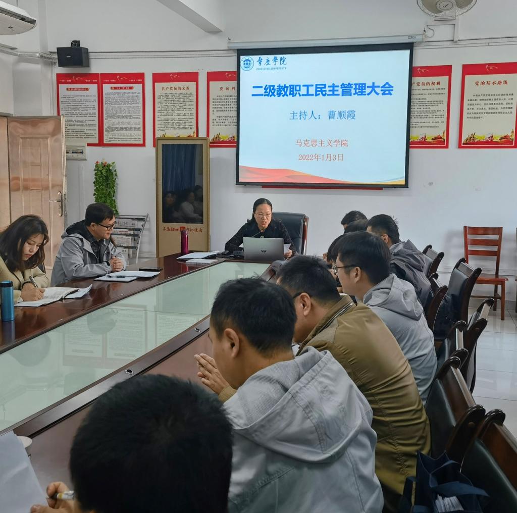 1月3日,taptap点点官方网站召开了二级民主管理大会。教师员工听取和审议了《taptap点点官方网站工作报告》《taptap点点官方网站财务、院务公开报告》,听取了学院党政领导班子和领导干部述职及执行党风廉政责任情况的报告,对马院领导班子和领导干部进行了一年来的履职及党风廉政建设进行了考评。
