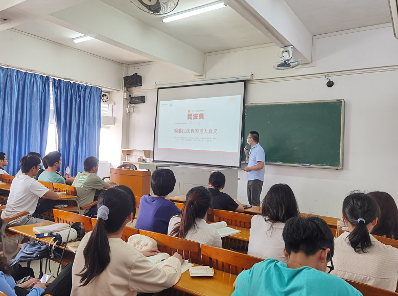 为进一步在学生群体中宣传《民法典》知识,让广大学生能够树立学法、用法、守法的观念,taptap点点官方网站张海鹰老师和任长鹏老师深入到学生的课堂中去给学生细致地讲解了《民法典》。这在广大学生中营造了学法典、用法典的良好氛围。