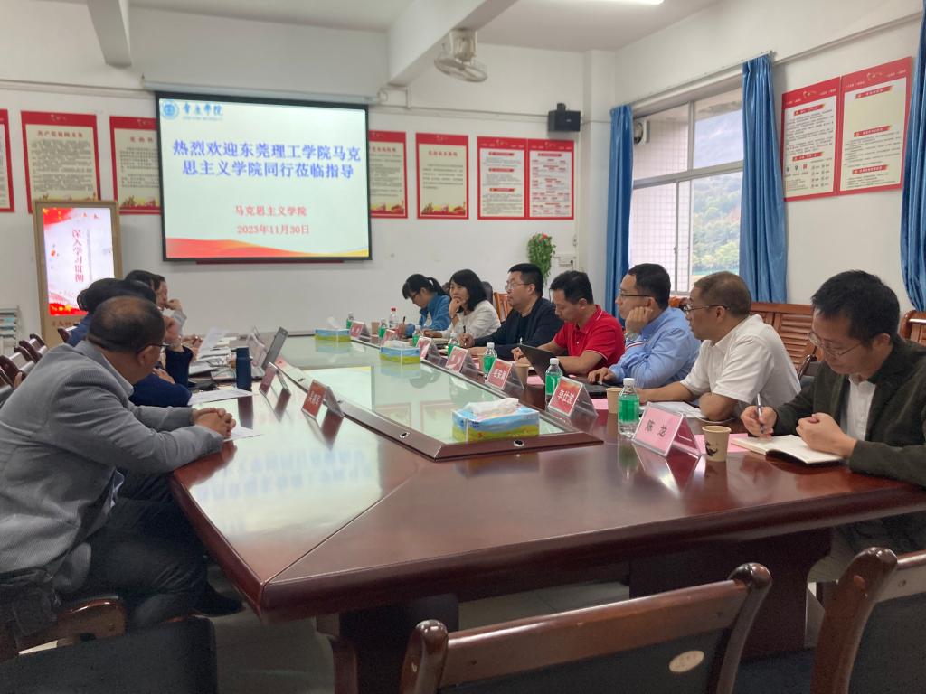 11月30日,东莞理工学院taptap点点官方网站党委书记、院长刘健一行9人到我校,就审核评估情况、学院教学改革等与我校马院进行了交流。曹顺霞院长介绍了马院在审核评估中的角色定位以及如何做好评估前的准备和迎评工作,并结合“一体两翼三支撑”思政课改革创新模式介绍了我校马院建设情况,教师们还就课程建设、教学改革等问题进行了深入的探讨。