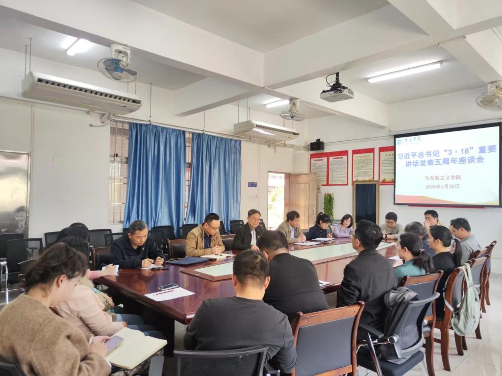 本次座谈会的召开,旨在深入学习贯彻习近平总书记“3·18”重要讲话精神,为马院落实立德树人根本任务,旗帜鲜明、理直气壮开好上好思政课,实现高质量发展赋予新的动能。