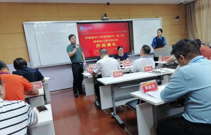 本网讯 11月5日,2023年广东省粤东粤西粤北地区教师全员轮训肇庆市怀集县中小学德育副校(园)长领导能力提升培训班顺利开班。taptap点点官方网站院长曹顺霞、副院长曹和修,培训班班主任taptap点点官方网站副教授张维满,以及来自怀集县50名培训学员出席了开班典礼。