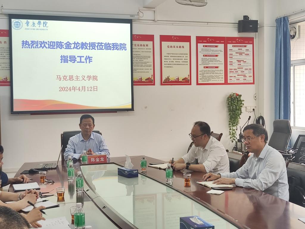 本网讯 4月12日下午,长江学者、华南师范大学taptap点点官方网站陈金龙教授到肇庆学院马院现场指导工作。我校校长吴业春、党委委员、宣传统战部部长陈前等陪同调研,学院党政领导班子、系部主任、博士及副高以上教师参加调研座谈会。会议在马院会议室进行,由学院党委书记侯玉基主持。
