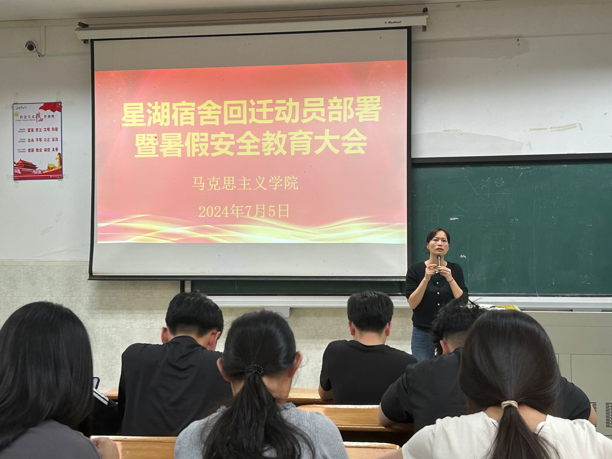 据悉,为做好搬迁工作,此前学院还提前召开了星湖校区宿舍回迁动员部署暨暑假安全教育大会。会上,负责宿舍管理的袁建雄老师详细地从物品打包、搬运安全以及新宿舍整理等方面强调了搬迁过程中需要注意的各项事项,杜志欣副书记还殷切提醒同学们在即将到来的暑假期间,要特别注意人财物安全,避免各类意外事故的发生。会后,杜志欣一行还实地考察了学生的宿舍,与学生们面对面交流,指导同学们做好宿舍搬迁准备工作。
