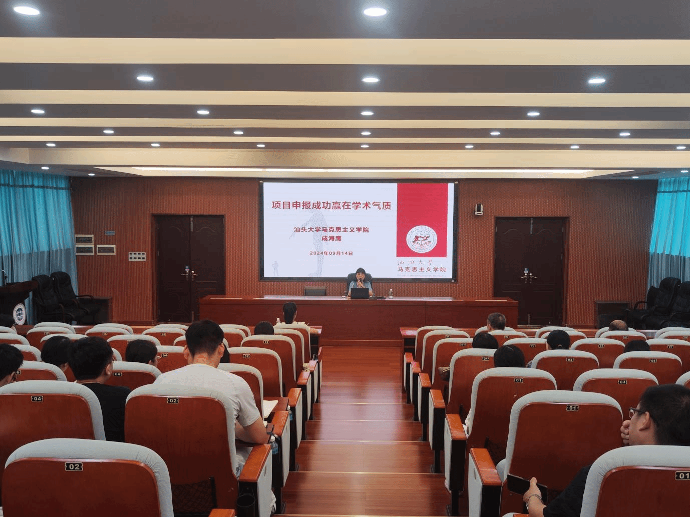 讲座中,成海鹰教授首先从自身在长沙理工大学和汕头大学的工作经历及科研项目申报经验出发,以平易近人的叙述方式,拉近了师生与科研工作的距离。其次,成海鹰教授以“项目申报成功赢在学术气质”为题,从什么是学术气质、好申报书的学术气质特征、学术气质通过细节突显三个方面,深入浅出地阐述了课题申报过程中选题的策略、标题的精炼、综述的撰写以及形式上的细节处理等关键要素,指导师生如何有效地进行项目申报。最后,成教授鼓励大家要保持对科研的热爱和坚持,鼓起勇气,大胆尝试,积极进行项目申报,通过日积月累的努力,方能实现厚积薄发。
