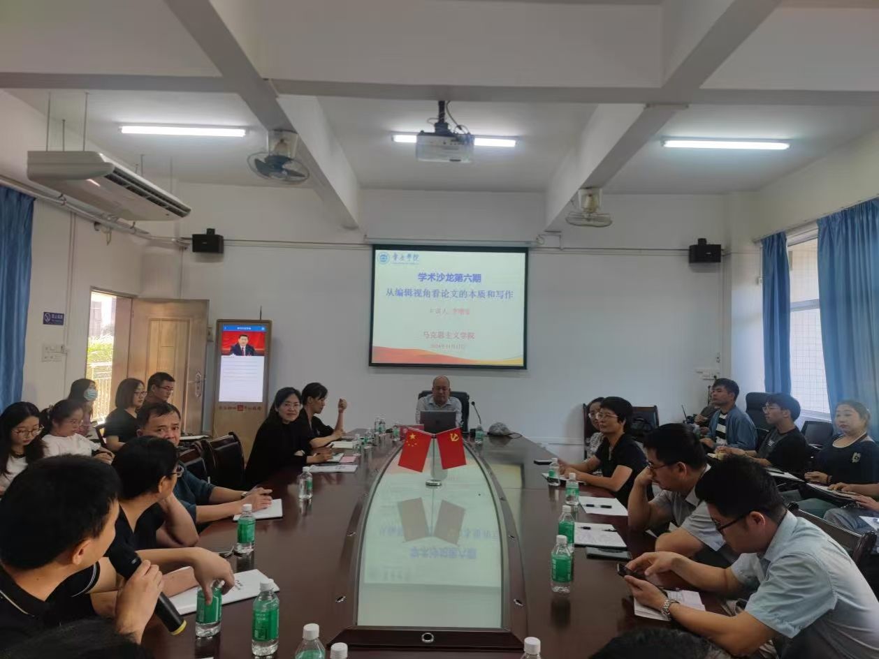 本网讯 为进一步激活科研活力,增加科研氛围,提升科研成果层次,推动学院科研工作高质量发展,11月13日,taptap点点官方网站第六期学术沙龙在学院317会议室召开。本次学术沙龙由《肇庆学院学报》编辑部主任李曙豪教授担任主讲嘉宾,作题为“从编辑视角看论文的本质和写作”专题讲座。学院院长曹和修,《肇庆学院学报》副主审宋先红老师、编审卢妙清老师以及学院教师与研究生参加会议,会议由学院副院长林润燕主持。
