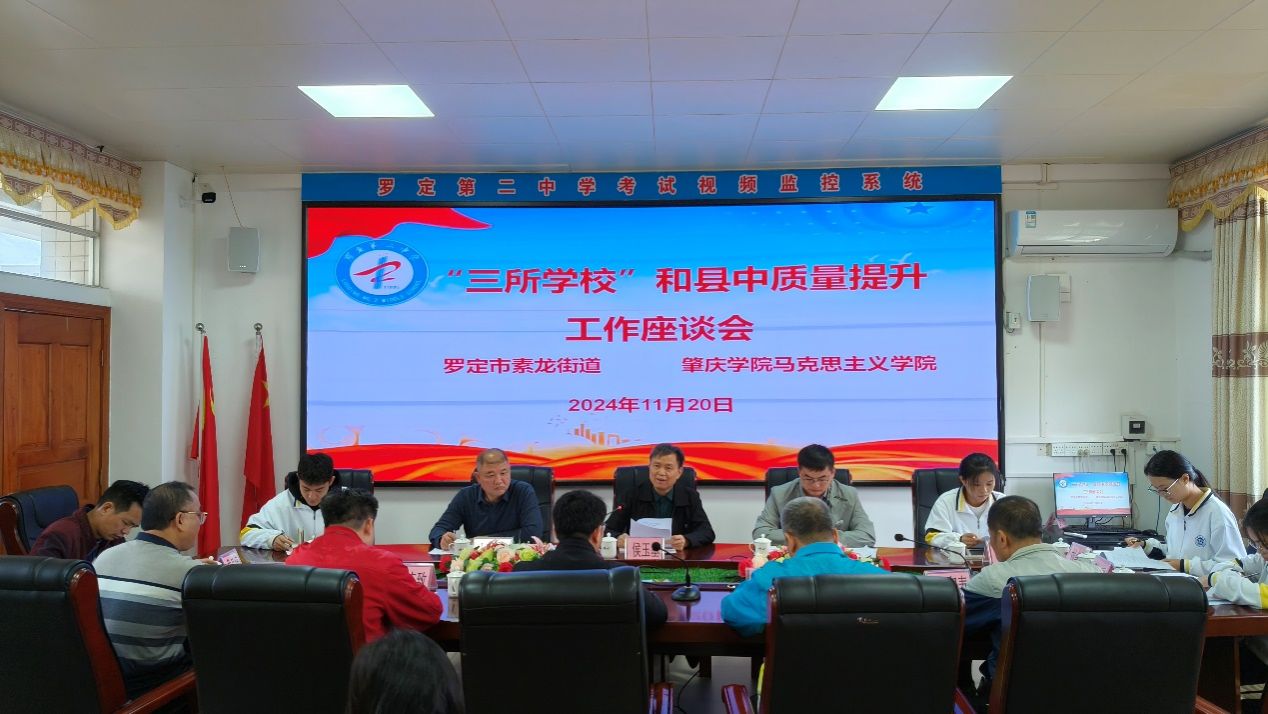 本网讯 为推进“三所学校”帮扶工作的开展,11月19-20日,taptap点点官方网站党委书记侯玉基带领学院突击队师生一行深入罗定市素龙街道罗定中学城东学校、罗定实验中学、素龙中心幼儿园、素龙中心小学、素龙中学、罗定第二中学、罗定第三中学等7所学校开展帮扶接洽和实地调研工作,素龙街道办叶家雄副主任及有关学校负责人参加。