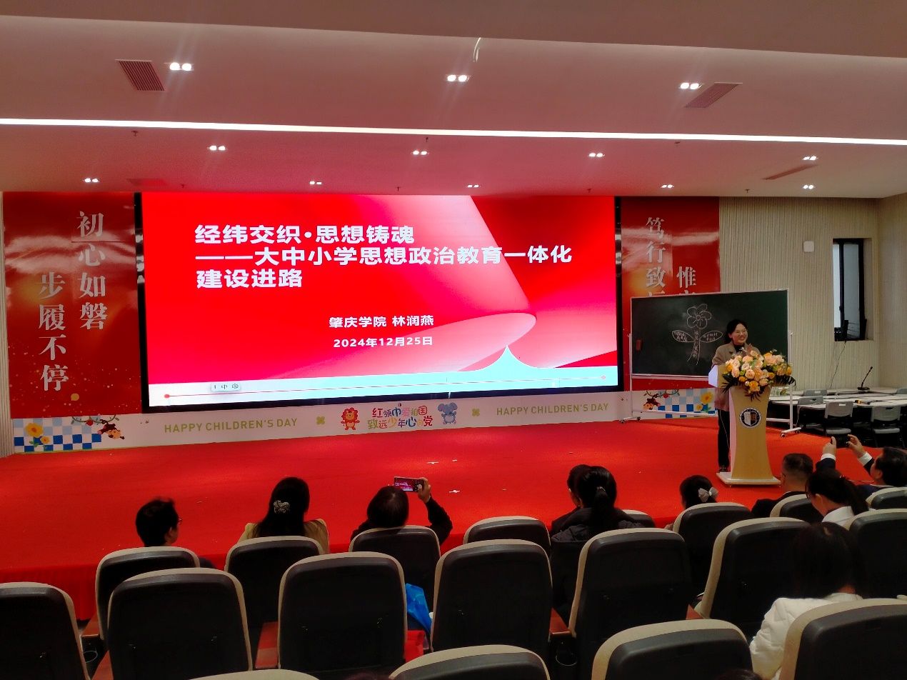 林润燕副院长在活动上作了题为《经纬交织·思想铸魂——大中小学思想政治教育一体化建设进路》专题讲座。林院长从大中小学思政课一体化建设历程、理论支撑、构建大中小学思政课一体化建设新模式及实施路径三方面深入浅出介绍大中小思政课一体化的重要性和必要性,并介绍了肇庆学院taptap点点官方网站在开展广东省大中小思政课一体化工作中的建设经验。她表示要紧抓大中小学思政课一体化教学契机,结合本地学情和本学段实际,积极探索更多创新的教学模式,提升思政课实效。与会老师深受鼓舞和启发,表示要努力发挥思政课培根铸魂的作用。