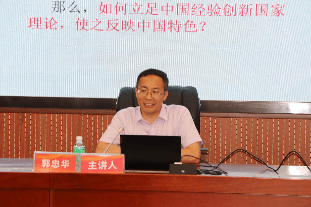 郭忠华教授以深入浅出的讲解,围绕研究问题与框架、“何种”力量基点的试错、“何者”力量基点的探索,以及力量基点与现代国家构建的比较分析等核心内容,层层递进地阐述了立足中国经验创新国家理论的研究缘由、发展脉络与现实启示。他精准剖析了中西方国家建构意图,就“如何立足中国经验创新国家理论,彰显中国特色”这一重要议题,为马院师生分享了极具深度的思考。