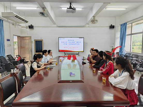 “红色行”辅导员工作室主持人唐艳秋介绍了工作室目前的基本情况以及提出了在建设过程中遇到的一些困难和困惑。王亚清和李倩倩也结合自身工作室工作过程中的实践经历和所获得的各项成果,分享了如何突出学校特色定位以及结合地方特色去进一步做好工作室建设发展等宝贵的经验做法。双方在座谈中还就做好民族学生的培养教育进行了探讨和交流。