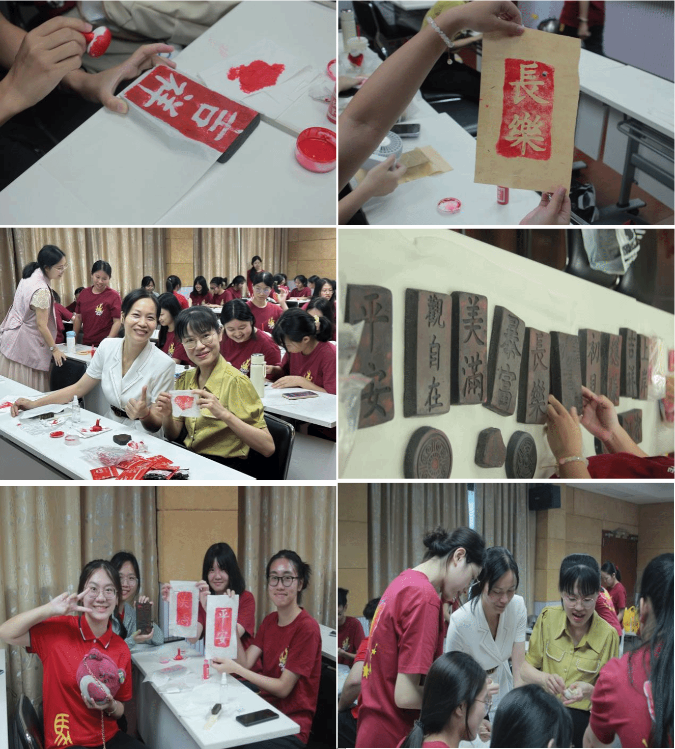 在非遗技艺“拓印体验”环节,同学们在老师的指导下,共同将“平安”、“长乐”等吉祥图案拓印于宣纸之上,亲身感受传统技艺的魅力。