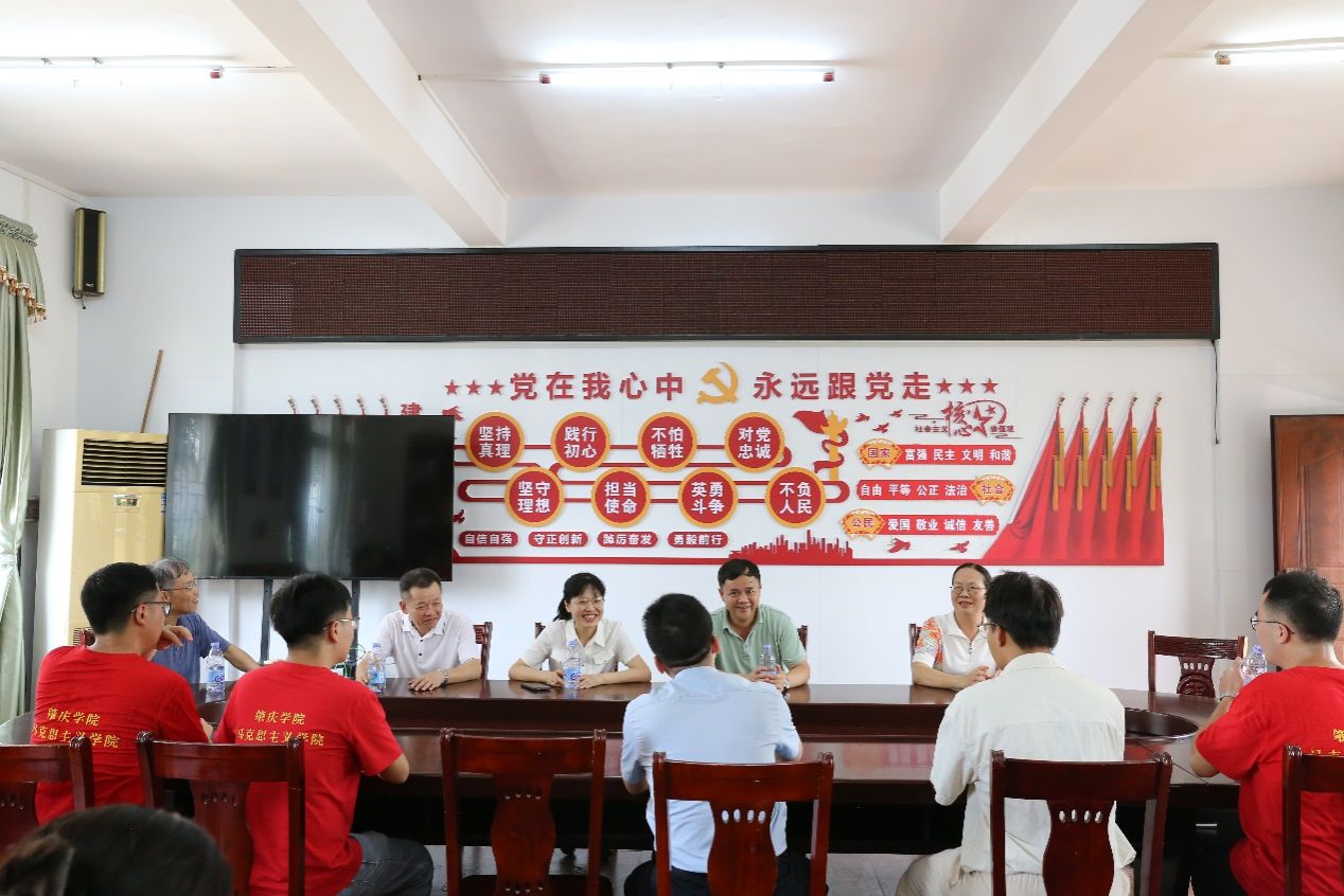 在素龙街道,曹和修一行看望了“肇庆学院-素龙街道”乡行记.青春力行团的师生,详细了解志愿者们的生活和工作情况,并在实践团驻点素龙中心小学与学校领导和带队师生一起座谈,感谢素龙中心小学给志愿者们所给予的支持和帮助,鼓励团队成员珍惜宝贵的实践机会,将专业知识与实践紧密结合,通过实践检验所学,持续提升能力素质,期望同学们能为乡村振兴建设贡献青春力量,助力“百千万工程”高质量发展,展现出马院学子良好的精神风貌和社会责任感。