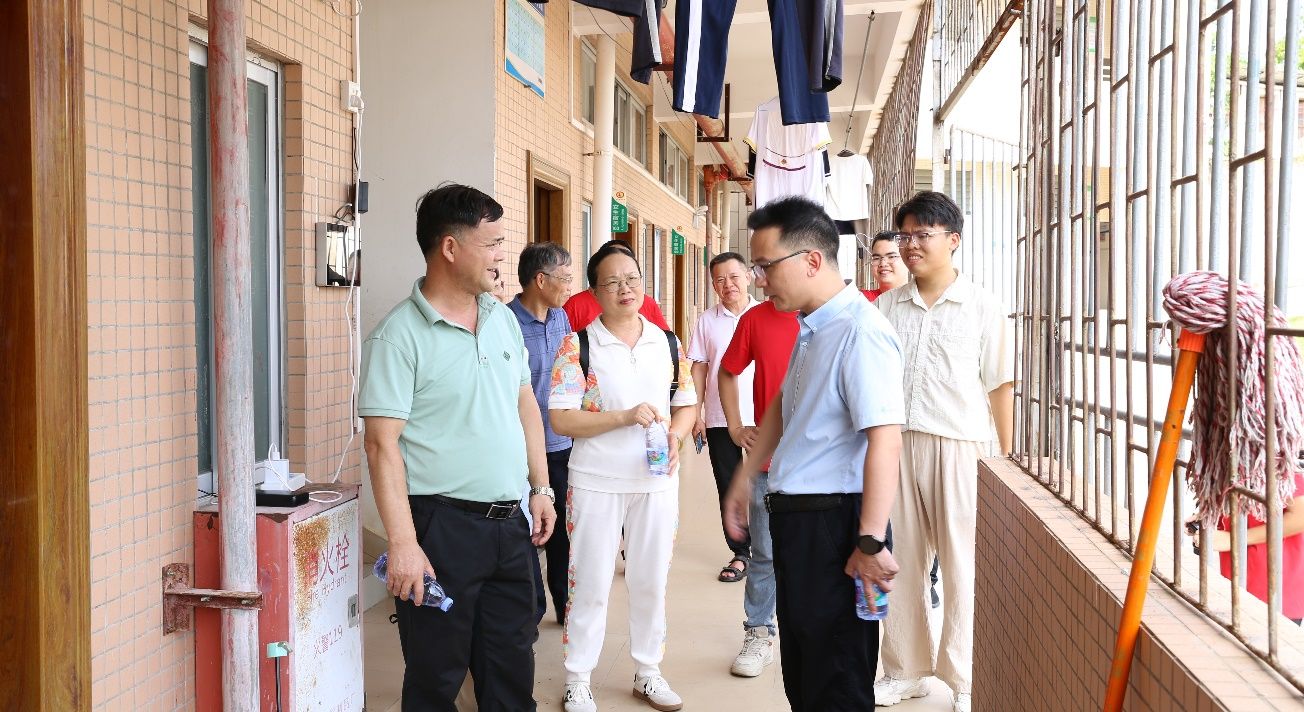 在双东街道,曹和修一行慰问了肇庆学院-双东街道“励马研行”社会调研实践队,在罗定第四中学校长的带领下实地走访了工作和住宿环境。曹和修与同学们亲切交流和座谈,并提出指导意见,耐心询问志愿者们“活动开展是否顺利?”“饮食是否适应?”“社会实践有什么收获?”等,同时叮嘱大家要珍惜此次社会实践锻炼的机会,在实践过程中充分发挥专业所长,为当地经济发展和乡村振兴贡献青春力量。