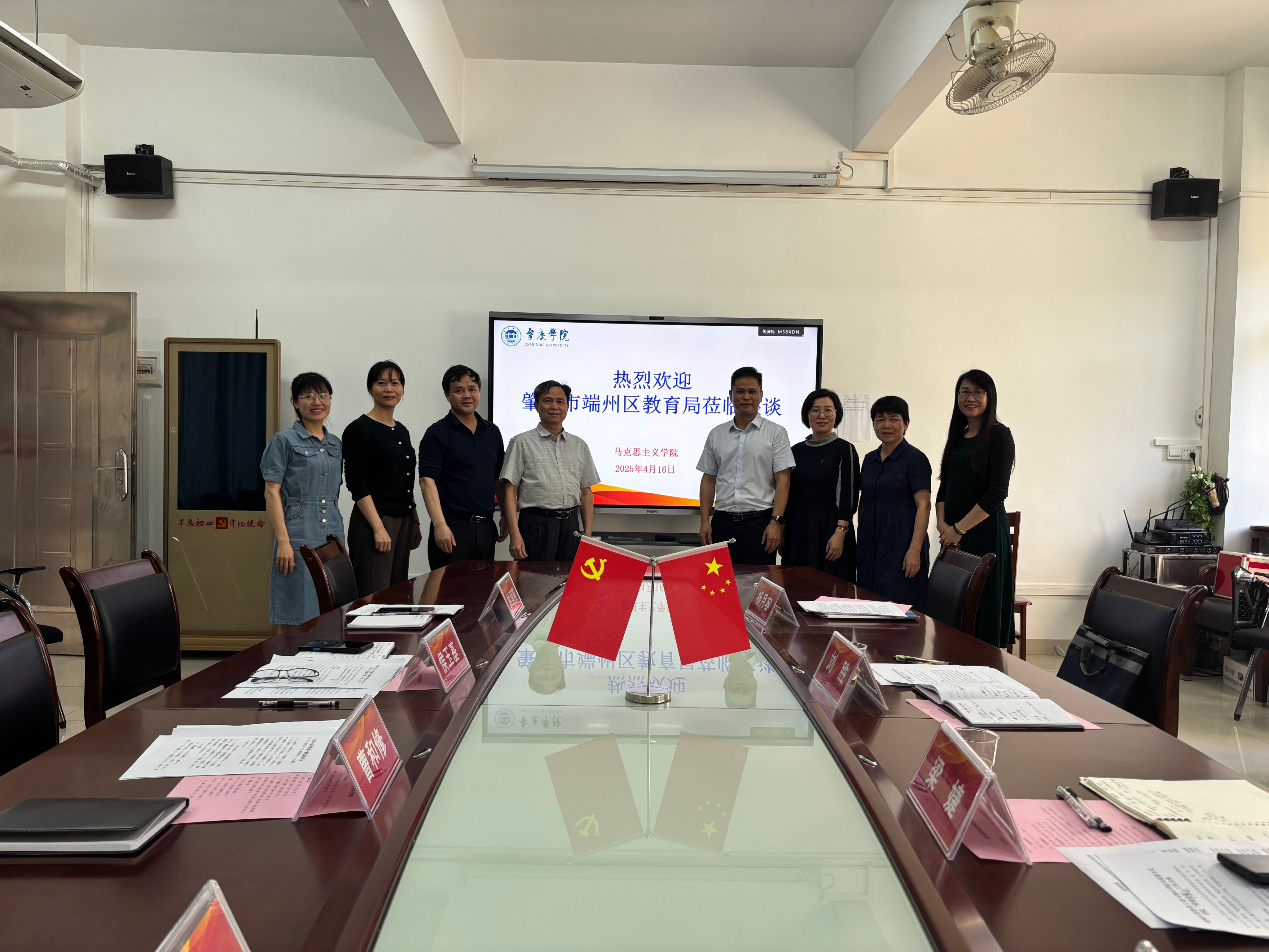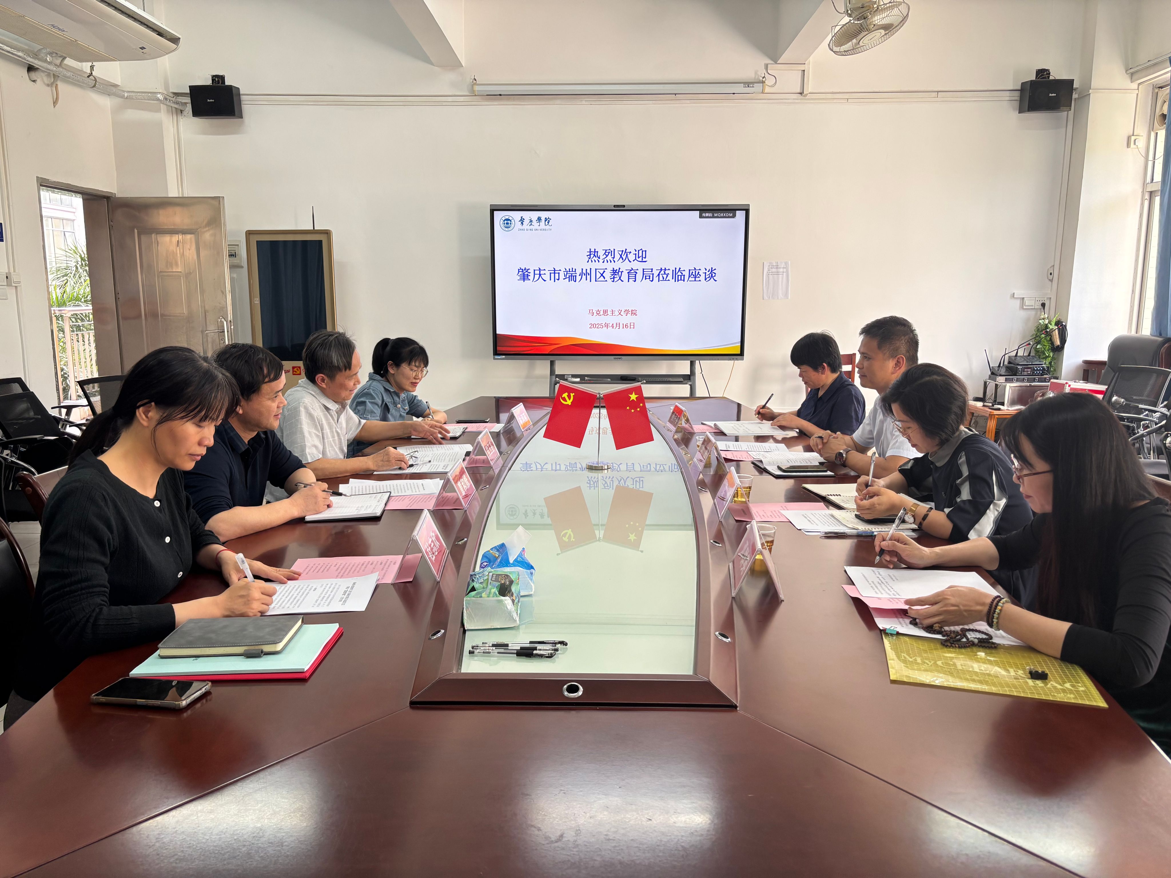 侯玉基代表学院对端州教育局的到来表示热烈欢迎,系统介绍了学院党建、思政课一体化等情况。他指出,taptap点点官方网站始终深入贯彻习近平总书记在学校思想政治理论课教师座谈会上的重要讲话精神,全面贯彻落实全国、省、市、区教育大会精神、《教育部办公厅关于开展中小学思政课一体化共同体建设的通知》和广东省教育厅《统筹推进大中小学思想政治理论课一体化建设的工作措施(试行)》等文件精神,深化党建引领,充分发挥taptap点点官方网站学科资源优势和端州区教育局统筹协同作用,构建区域大中小学思政课一体化育人体系,赋能教育发展。