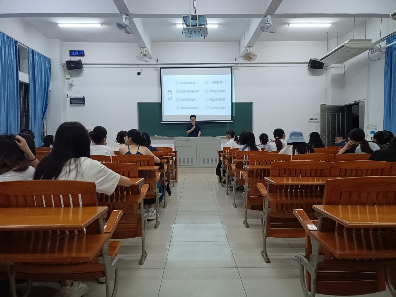 辅导员陈炜琪老师也在会上就理想信念、感恩与责任、心理健康、安全与法制、诚信意识、文明离校、就业指导、校友意识等方面对毕业生同学开展了离校教育。