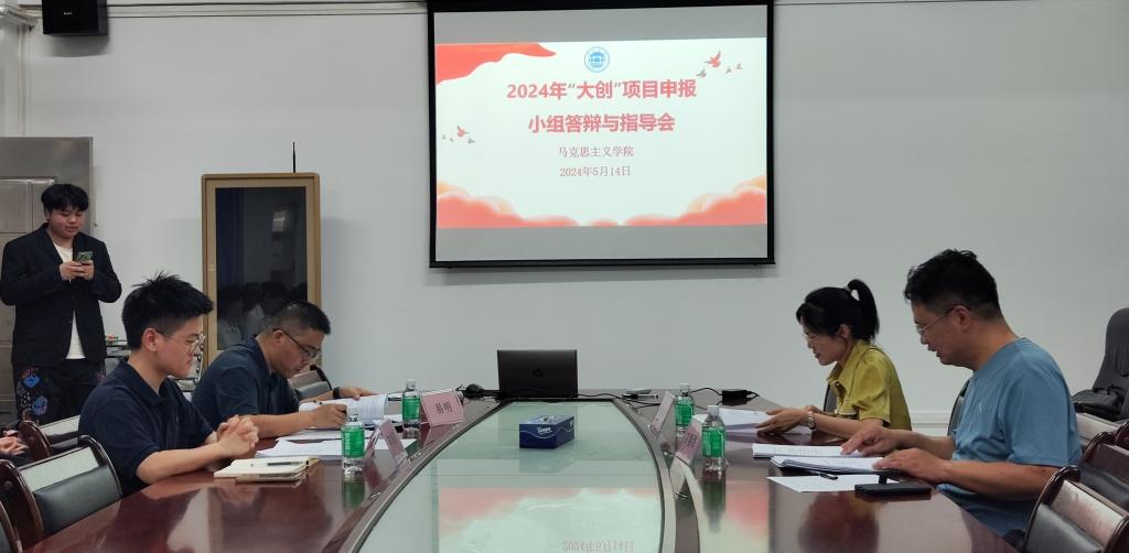 本网讯 5月14日晚,马院在学院会议室举办2024年“大创”项目申报评审与答辩会。本次答辩会由学院林润燕副院长,思政系易明、高春海老师,辅导员陈炜琪老师担任评委,为参与2024年“大创”项目申报答辩的12支项目团队,做出客观公正的点评和专业的指导。