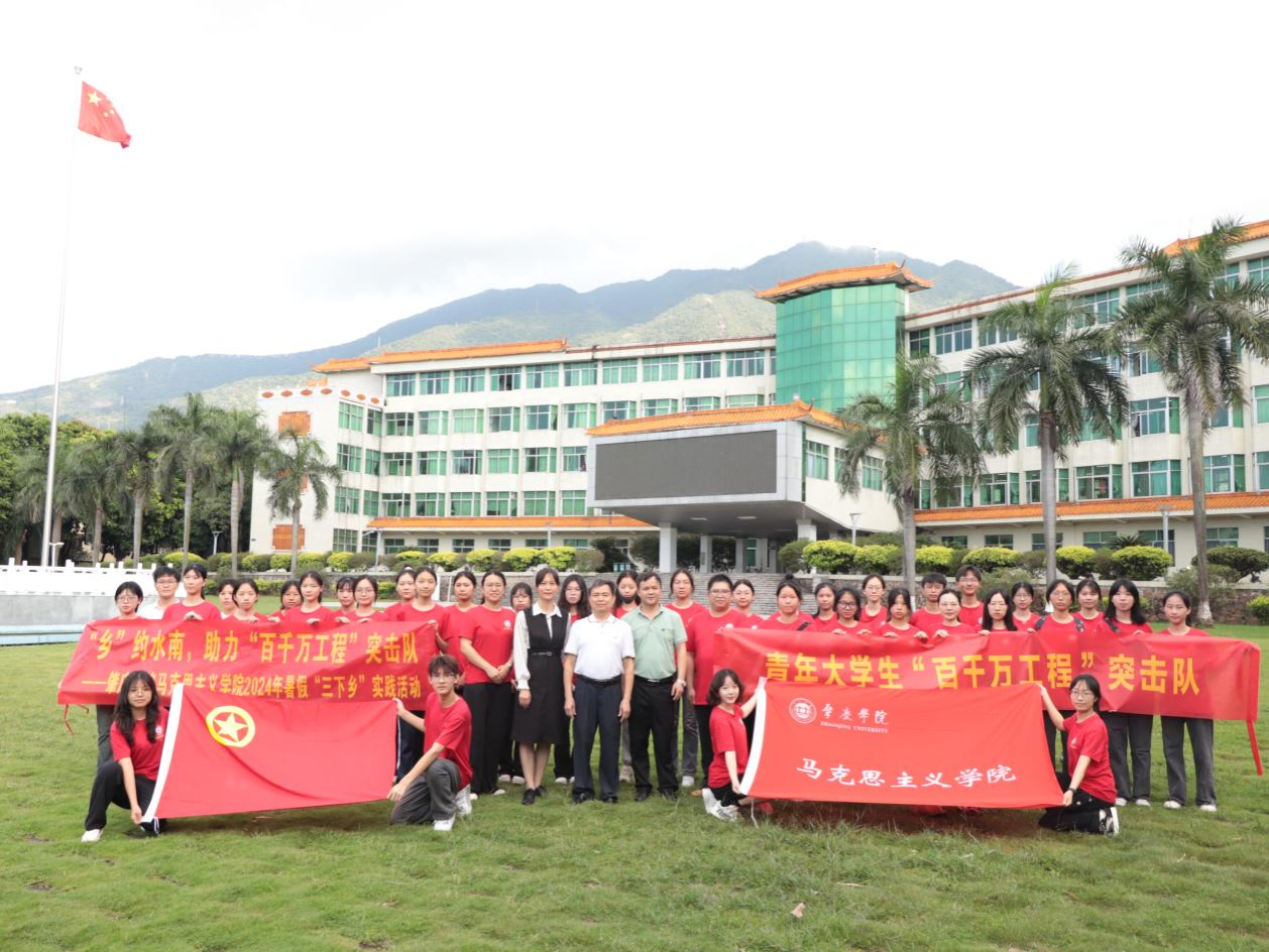 在仪式上,侯玉基书记对参与社会实践活动的师生们提出了三点要求。一是深入理解“三下乡”对于助力百千万工程,赋能乡村振兴的重要意义。二是深入乡村,实地感受粤东西北不同地理位置所带来的经济发展格局的差异。三是通过本次社会实践经历做好调研,为学校和地方发展建设提供高质量的参考建议。