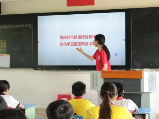 本次是在沙头小学进行“童绘红色梦,心扬爱国情”为主题的思政课下乡宣讲活动。队员们分别分为五组以不同的主题在不同班级展开思政课授课。宣讲队员先以动画视频、场景扮演、故事讲述等生动有趣的方式向小朋友们宣传革命人物及其精神,而后又再通过引导小朋友用制作小手工等亲身体验的方式,带领他们从实践层面了解红色文化、感受先烈精神。课堂内容活泼,意义深远,所有参与课程的沙头小学学生们都感到耳目一新,受到了很好的红色教育。