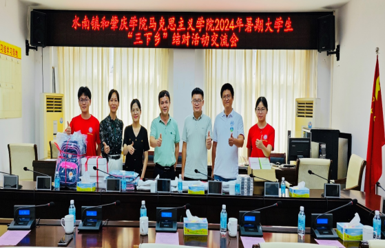 与会的实践队师生也就近期开展的活动谈了心得体会。会后,学院领导班子向水南镇中小学捐赠书包、笔记本等爱心助学物资,并到双波村进行调研考察。