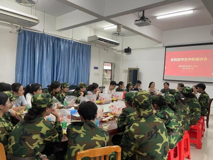 本网讯 在中秋佳节来临之际, 学院特举行了各民族学生中秋座谈会。学院院长曹和修、副院长林润燕、专职组织员唐艳秋、教师袁建雄及各民族学生代表共同参加座谈会,座谈会由学院党委副书记杜志欣主持。