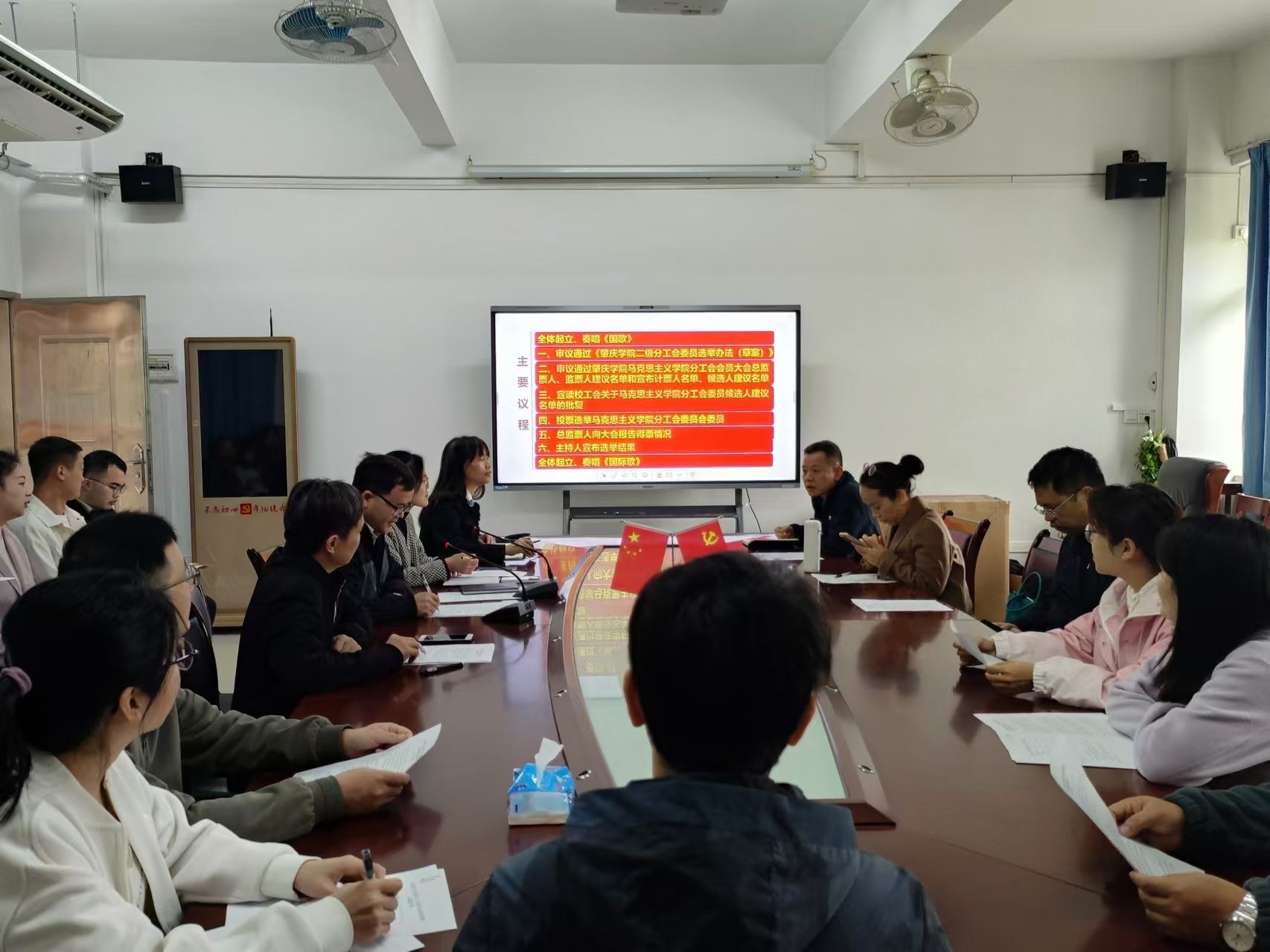 大会在庄严的国歌声中拉开帷幕。会议审议并通过了《肇庆学院二级分工会委员选举办法(草案)》和总监票人、监票人名单。大会按照《肇庆学院二级分工会委员选举办法(草案)》及相关规定,以无记名投票的方式,顺利选举产生了新一届分工会委员会委员。整个过程民主、公正、透明。