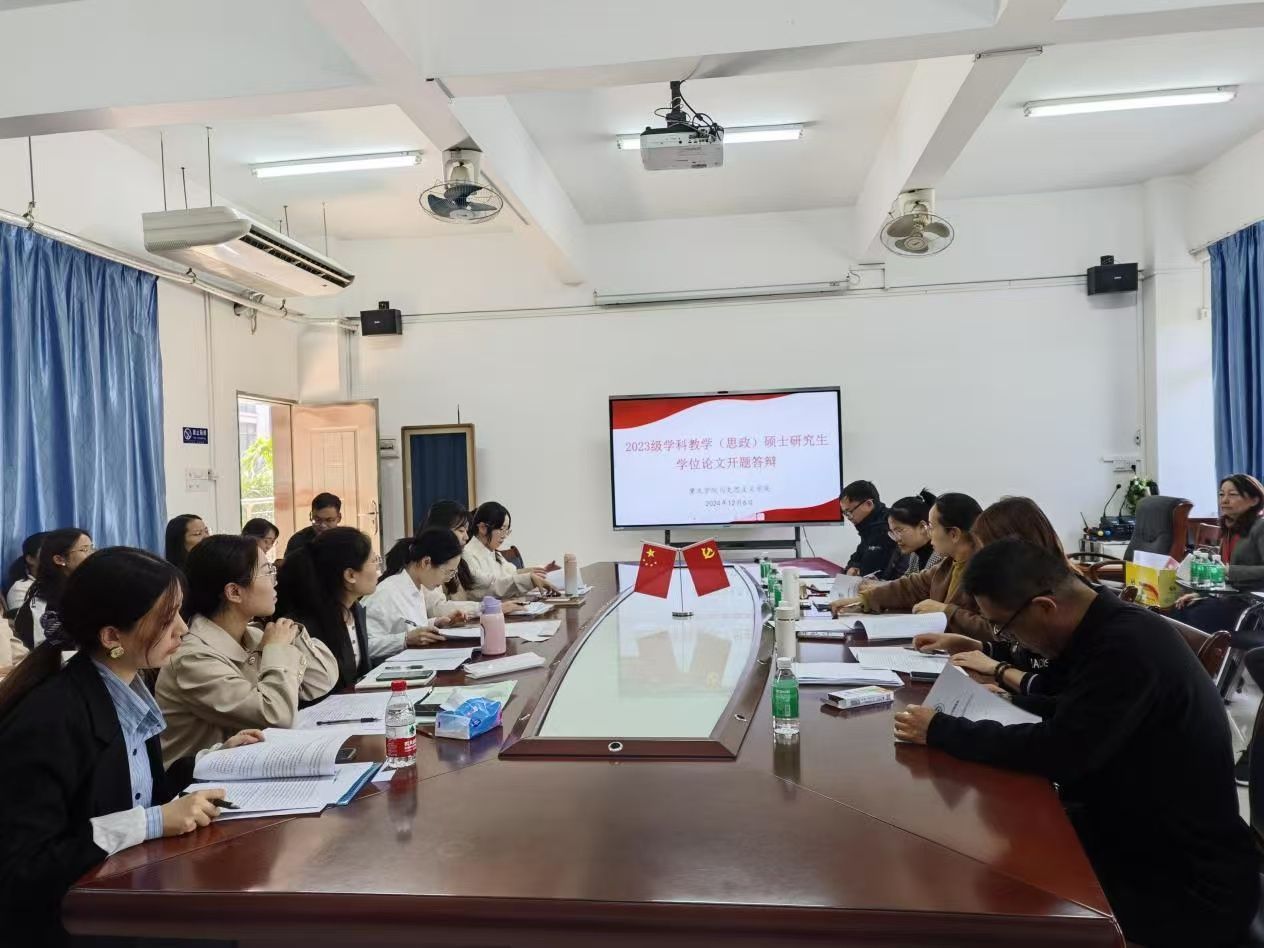 本网讯 为全面提升研究生培养质量、强化过程管理的培养理念,结合研究生培养工作要求和日程,12月6日,马克思主义院组织2023级学科教学(思政)专业硕士研究生开展学位论文开题答辩工作。按照学校研究生培养相关规定,本次开题答辩审核小组,除了学院院长曹和修、副院长林润燕、易明和方拥香4位硕士生导师外,还特邀请了校外行业导师,肇庆市第一中学高级教师符少容担任答辩评委。
