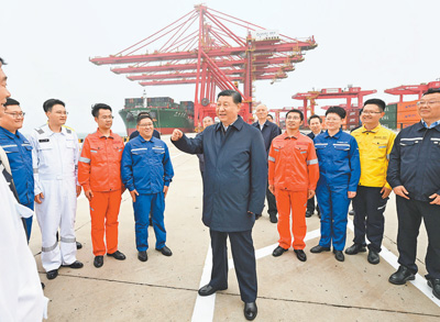 22日下午,习近平首先来到日照港考察。日照港是重要的能源和大宗原材料中转基地,近年来推进智慧化、绿色化建设,建成顺岸开放式全自动化集装箱码头。习近平听取山东省港口发展建设和日照港规划布局等情况介绍,并察看全自动化集装箱码头作业场景。他说,日照港是改革开放后新建的港口,近年来推进科技创新,将传统港口改造升级为现代化港口,不仅货物吞吐量跻身全国前列,还积累了通过传统产业改造升级发展新质生产力的经验,值得肯定。习近平亲切慰问港口科技工作者、运营人员、航运人员,希望大家再接再厉、继续奋斗,推动日照港管理运营更上一层楼。