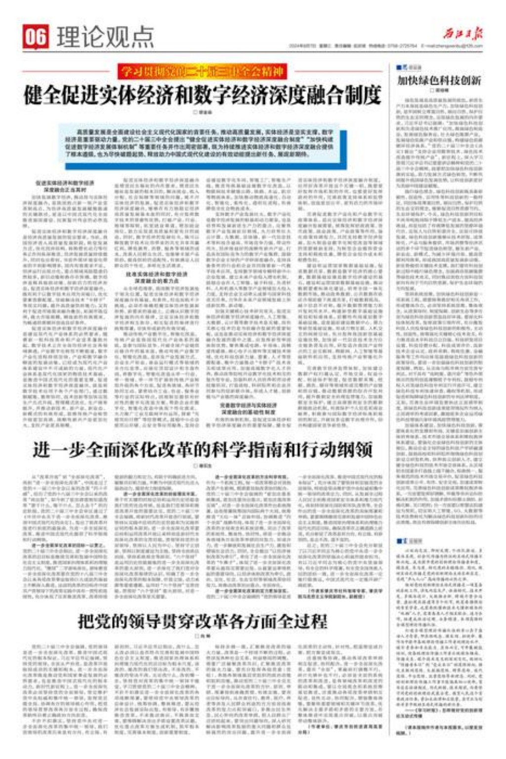 从“改革开放”到“全面深化改革”,再到“进一步全面深化改革”,中国走过了党的十一届三中全会以来的改革“四十不惑”,经历了党的十八届三中全会以来的改革“再出发”,如今到了更加清楚地知道改革“要干什么、能干什么、怎么去干”的历史阶段。党的二十届三中全会审议通过了《中共中央关于进一步全面深化改革、推进中国式现代化的决定》,发出了将改革开放进行到底的最强音,为进一步全面深化改革、推进中国式现代化提供了科学指南和行动纲领。