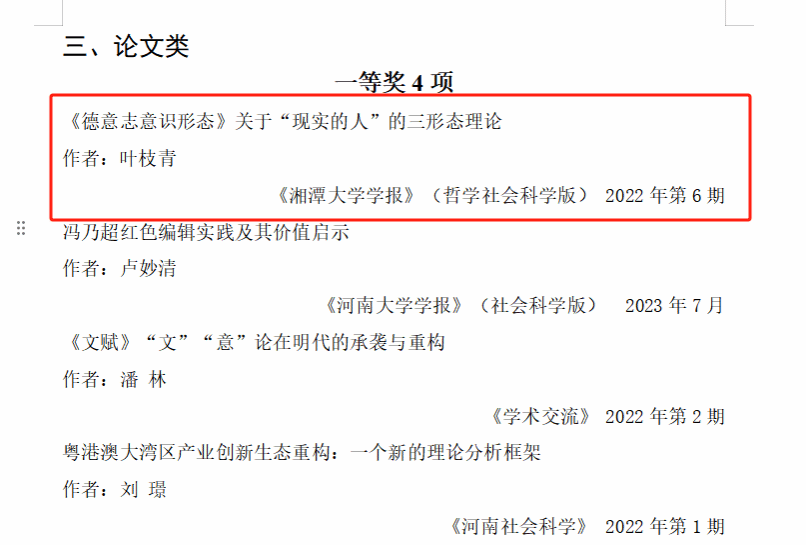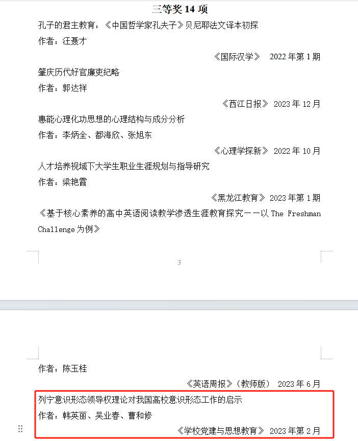 本网讯 近日,肇庆市第十七届(2022—2023年度)社会科学优秀研究成果评审结果公布,taptap点点官方网站教师在论文类成果获奖共3项:一等奖1项、二等奖1项、三等奖1项。