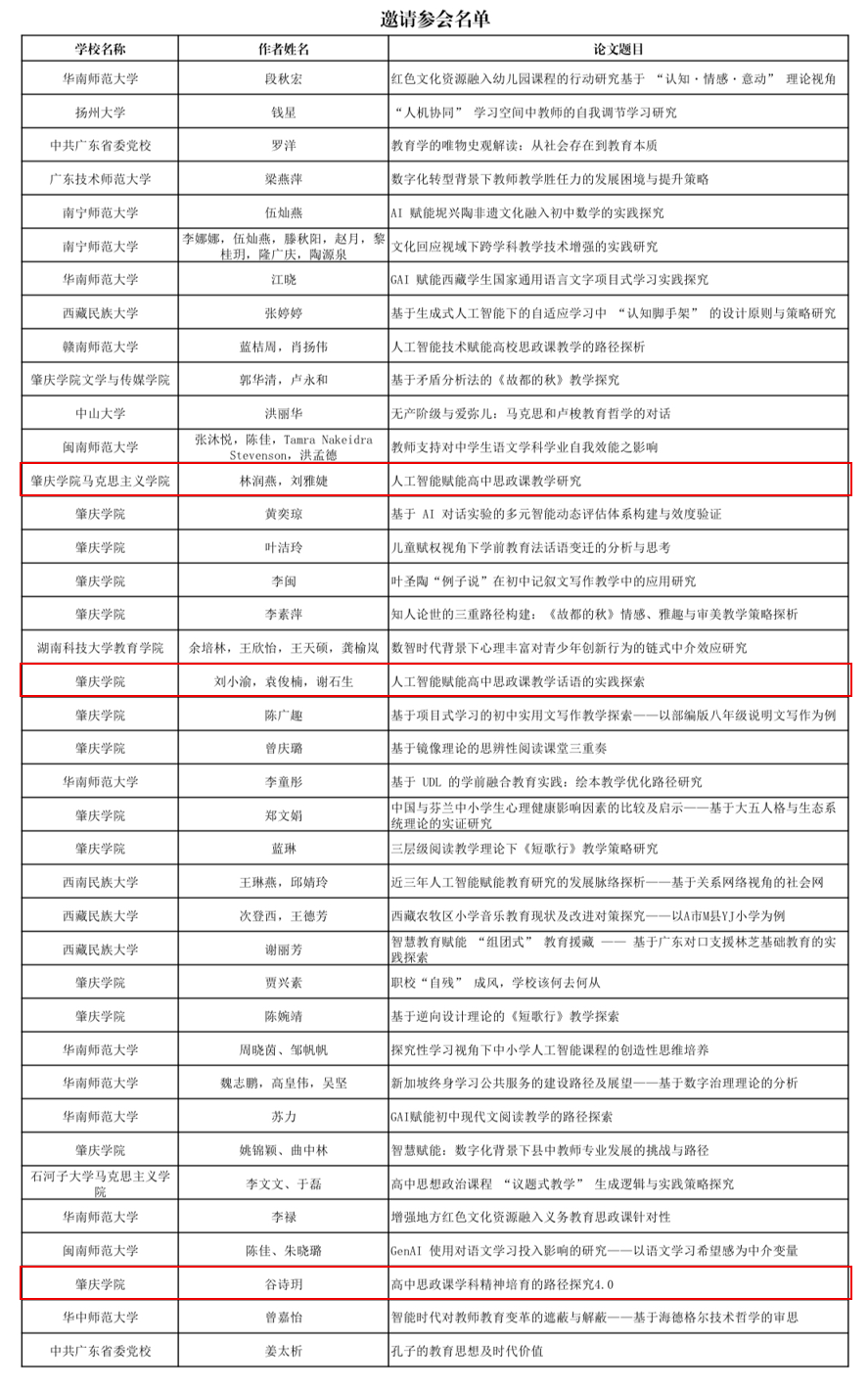本网讯 近日,广东省研究生学术论坛——教育硕士分论坛入选邀请参会名单正式公布,taptap点点官方网站研究生在此次评选中表现优秀,2023级、2024级学科教学(思政)多位研究生的论文成功入选。此次入选的论文聚焦当下教育热点与学科前沿,展现出taptap点点官方网站研究生扎实的学术功底与敏锐的问题意识,充分彰显了学院在研究生培养方面的成效。
